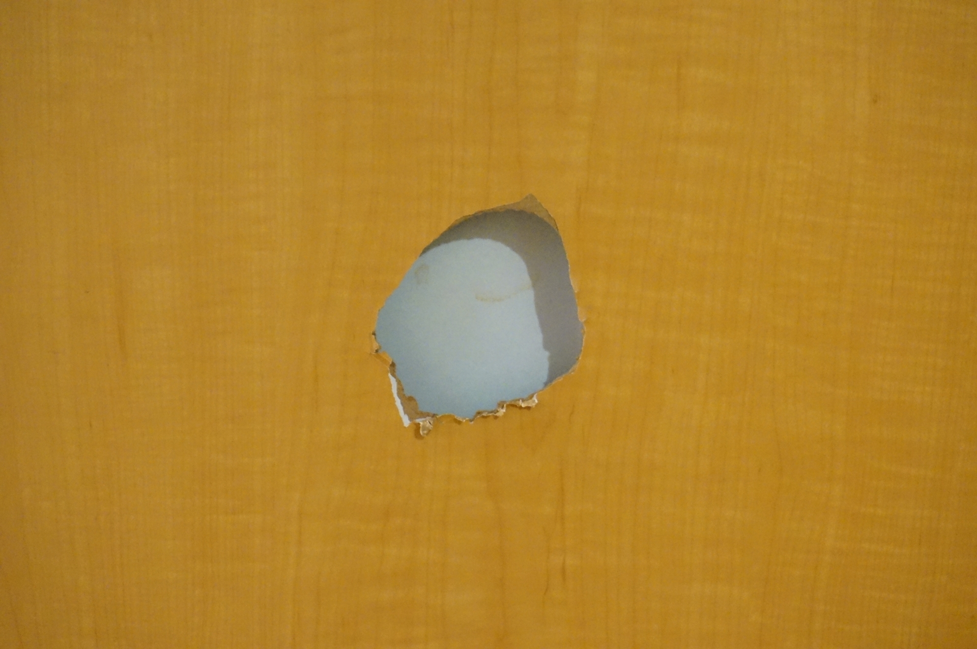 誤ってぶつけた衝撃で開いてしまったドアの穴を補修。